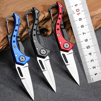 มีดพับขนาดเล็กแบบพกพาสำหรับกลางแจ้งและตั้งแคมป์พวงกุญแจด่วนสเตนเลสสตีลความแข็งสูงเปิดพับได้สไตล์ DIY เกรด