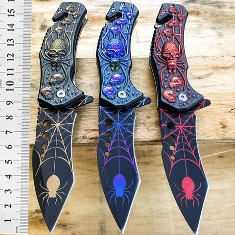 Cuchillo plegable 3D personalizable de 8,5 pulgadas con calavera de araña táctica con hoja de acero inoxidable Producto OEM
