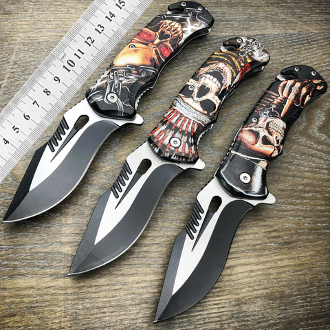 טקטיקות 2025 התאמה אישית oem להב נירוסטה להב מתקפל סכין הצלה קטנה עם עיצוב הגולגולת 3D