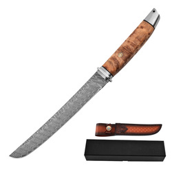 Il nuovo coltello da campeggio di sopravvivenza all'aperto del produttore in acciaio damasco con bella maniglia in legno personalizzabile OEM supportato