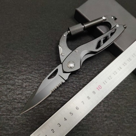 Coltello multifunzione portatile in acciaio inox pieghevole con moschettone per campeggio all'aperto per il commercio estero di esportazione